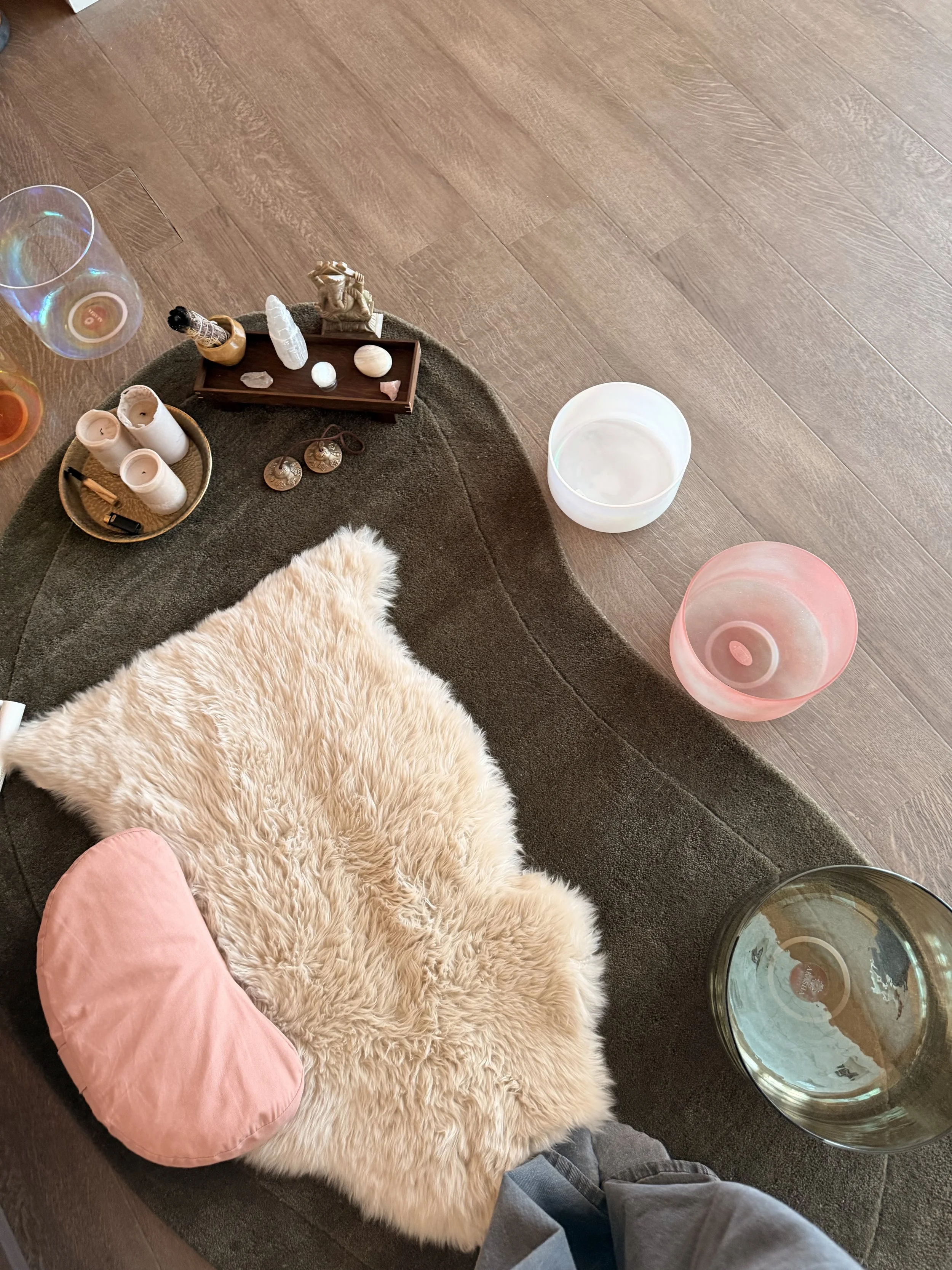 Ein Sound Bath mit Crystal Bowls, Klangspielen und weiteren, einfühlsam eingesetzten Instrumenten begleitet dein Nervensystem sanft in einen Zustand tiefer Entspannung.